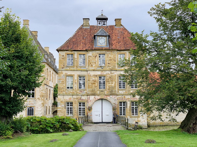 Oft fahren, wandern oder radeln wir daran vorbei, aber wer war schon einmal drin? Nunja, ganz rein können wir leider nicht, da das Schloss privat bewohnt wird. Aber wir sehen die Innenhöfe und die Orangerie. Anschließend lassen wir uns Kaffee und Kuchen bei der Gaststätte Tatenhausen schmecken.